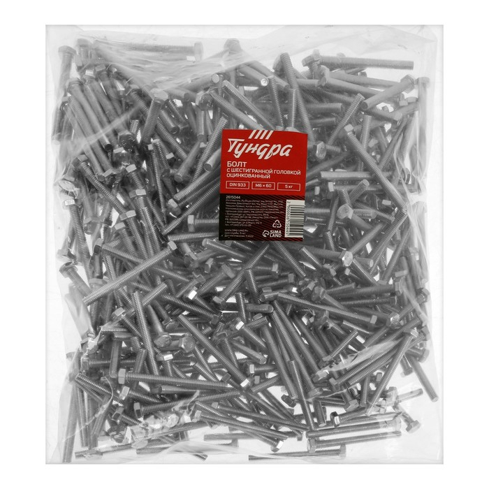 Болт ТУНДРА, оцинкованный, DIN 933, класс прочности 8.8, М6х60 мм, 5 кг