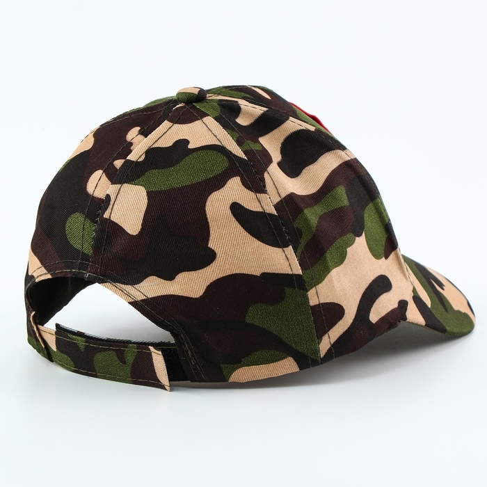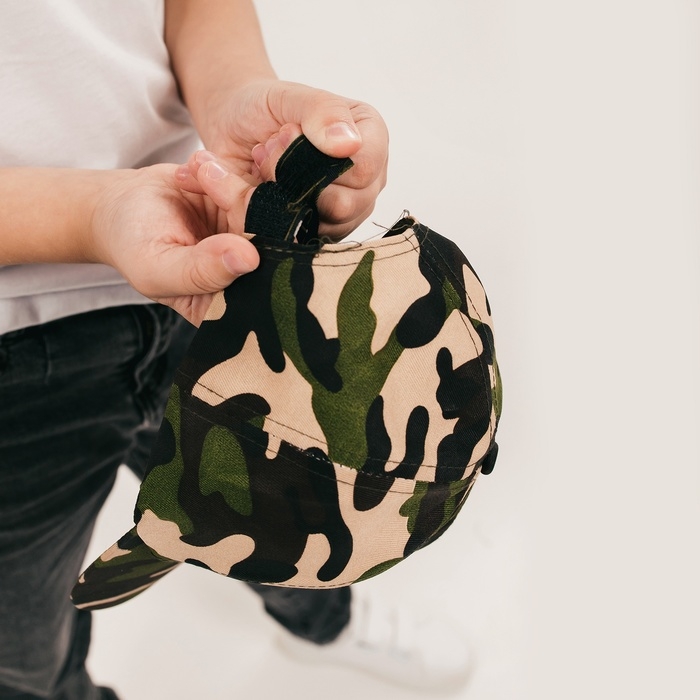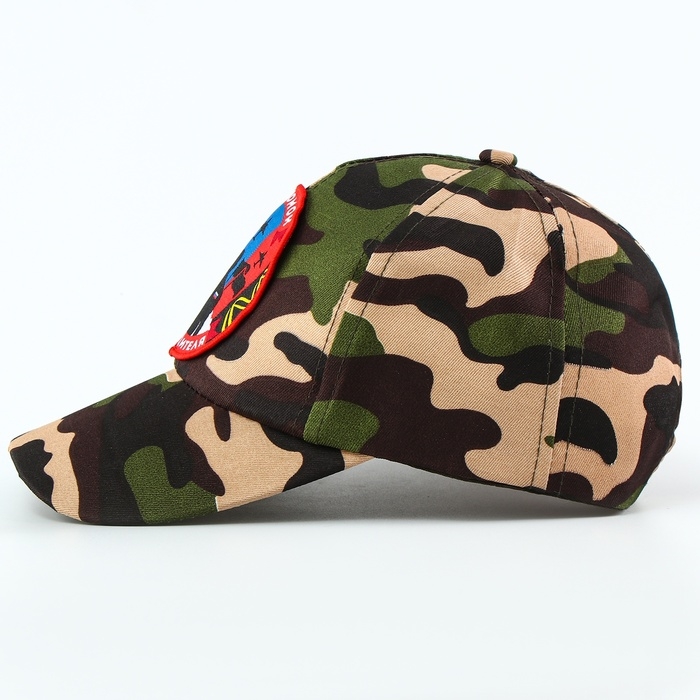 - Камуфляжный цвет и нашивка-солдат придают кепке стильный военный вид. Эти элементы делают аксессуар узнаваемым, подчёркивая его тематическую направленность и добавляя нотку реализма в костюм.