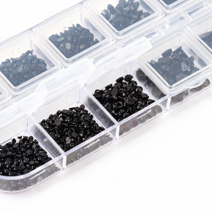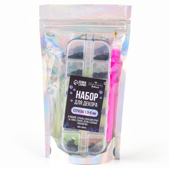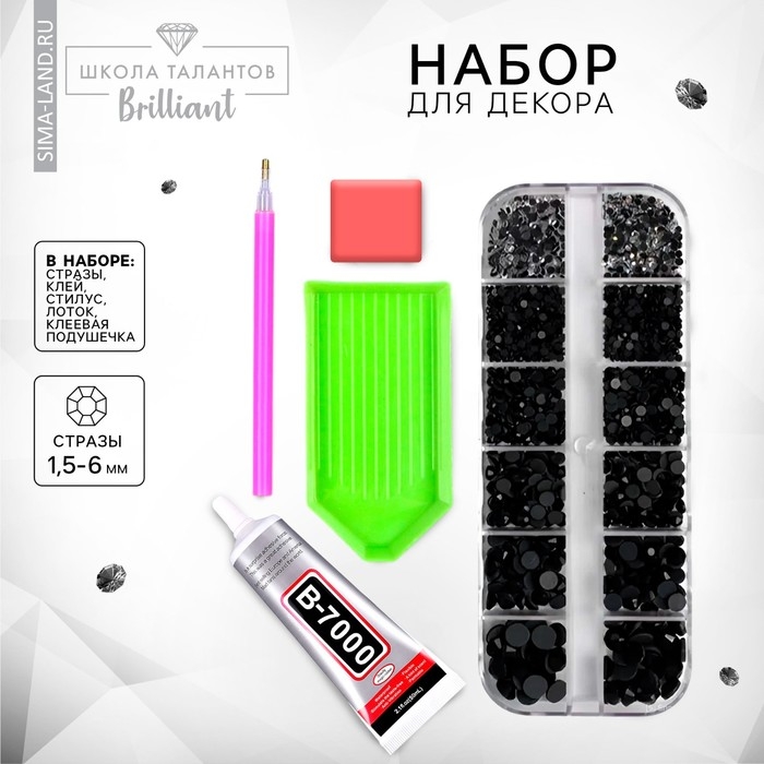 Стразы для творчества холодной фиксации с инструментами и клеем, цвет черный, размер от 1,5-6 мм, подходят для лица и ногтей