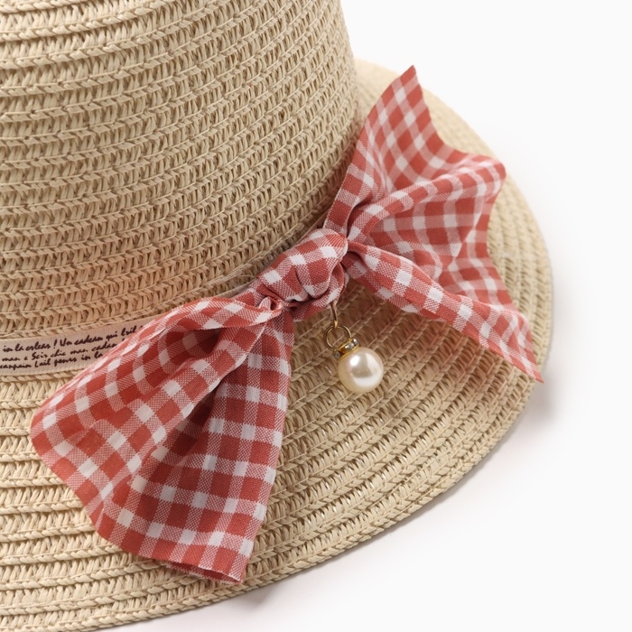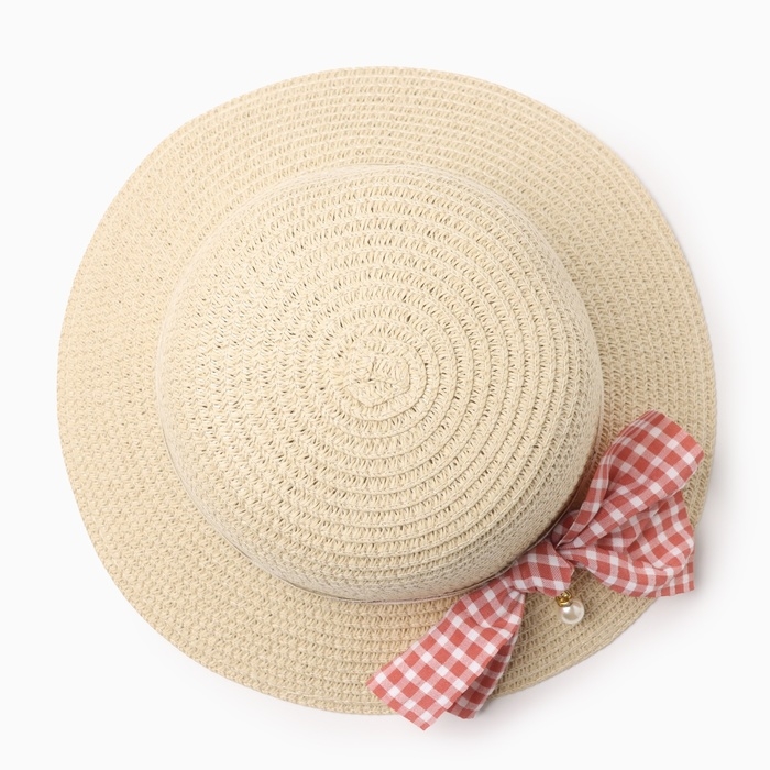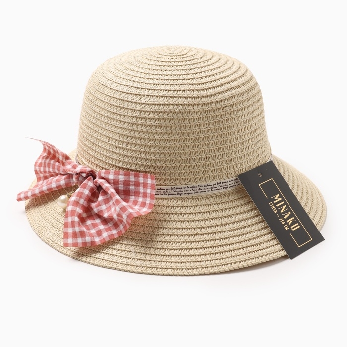 Шляпа для девочки MINAKU с бантом, цвет бежевый, р-р 52