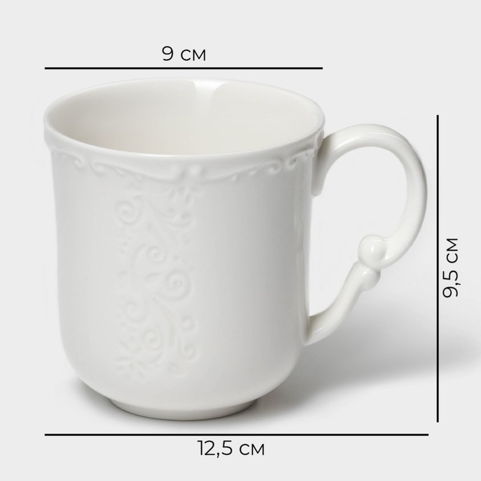 Фарфоровая кружка Magistro Kingdom выполнена из высококачественного материала, который отличается долговечностью и эстетичным внешним видом. Белый цвет кружки идеально впишется в любой интерьер, а выдавленный рельефный дизайн придаст изделию особый шарм.