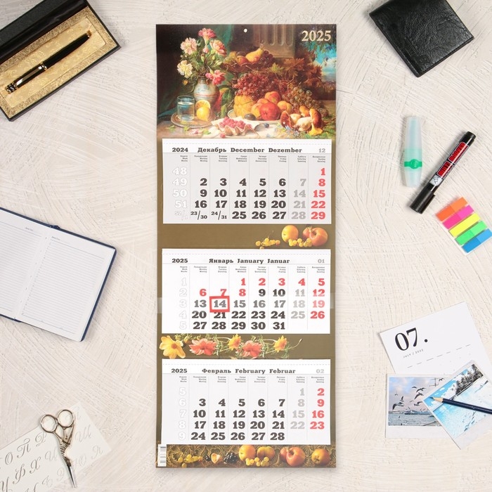 Календарь настенный квартальный Премиум трио "Натюрморт" 2025 год, 34 х 84 см