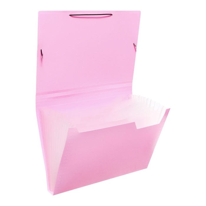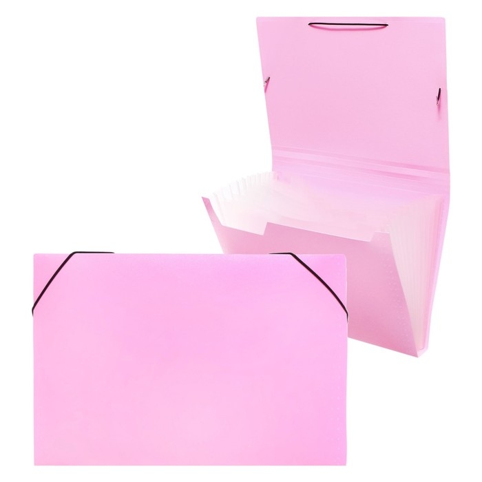 Папка картотека А4, Calligrata "Акварель", 13 отделений, пластиковая, 700 мкм, фламинго, резинка чёрная