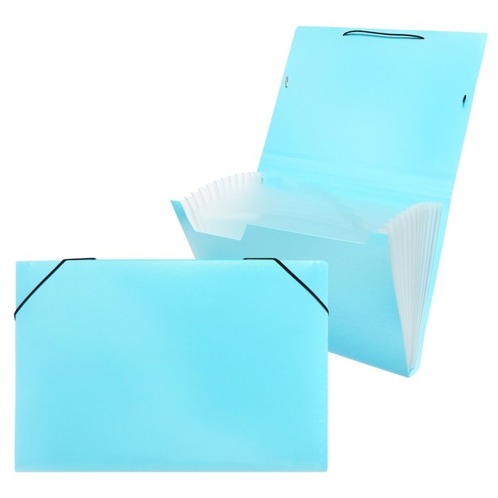 Папка картотека А4, Calligrata "Акварель", 13 отделений, пластиковая, 700 мкм, бирюзовая, резинка чёрная