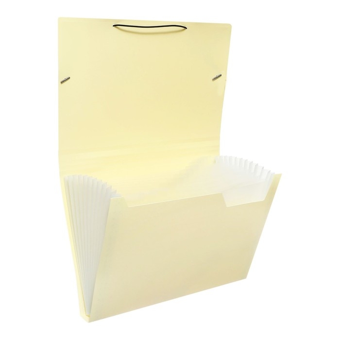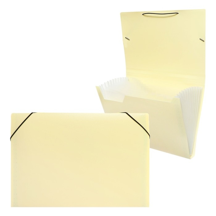 Папка картотека А4, Calligrata "Акварель", 13 отделений, пластиковая, 700 мкм, ванильная, резинка чёрная