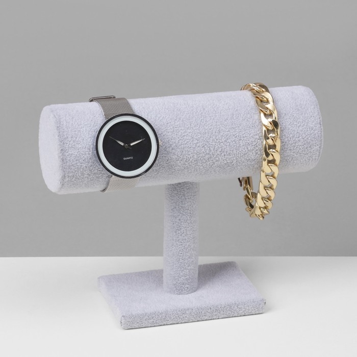 Подставка для часов, браслетов, цепочек «Мини», флок, 16×6×14см, d=5см, цвет серый