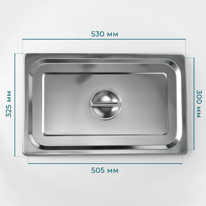 Крышка из нержавеющей стали к гастроемкости 1/1, 53×32,5 см, толщина 0,8 мм