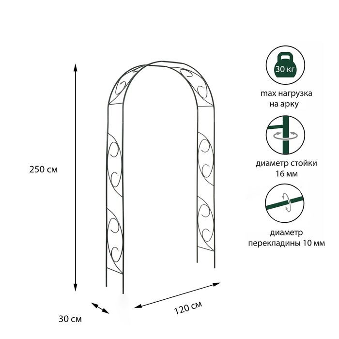 Арка садовая, разборная, 250 × 120 × 30 см, металл, зелёная, «Узор-1»