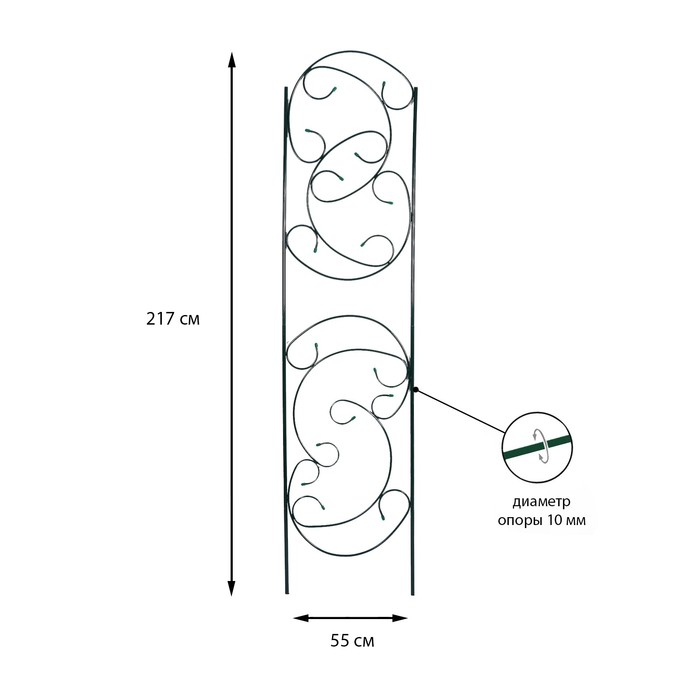 Шпалера, 217 × 55 × 1 см, металл, зелёная, «Эска»