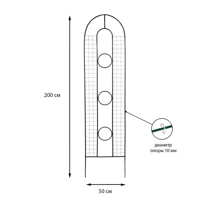 Шпалера, 200 × 50 × 1 см, металл, зелёная, «3 кольца»