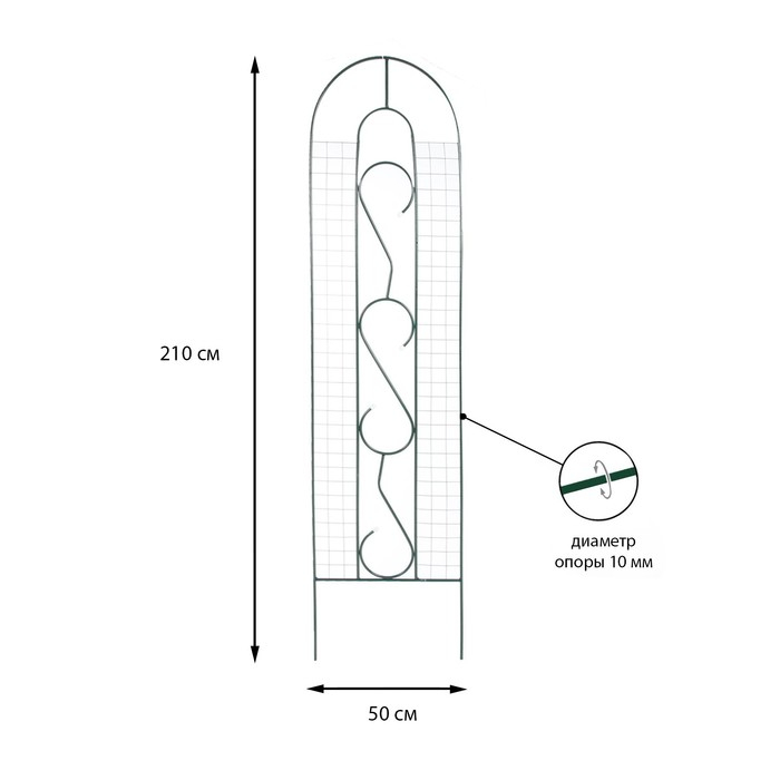 Шпалера, 210 × 50 × 1 см, металл, зелёная, «Узорная»