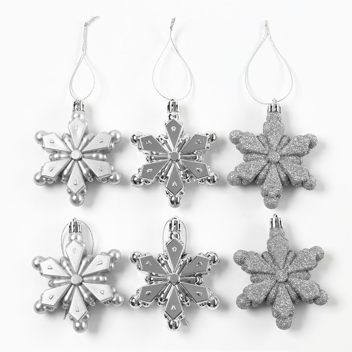 Ёлочные игрушки новогодние «Новый год: Снежинки», цвет серебристый