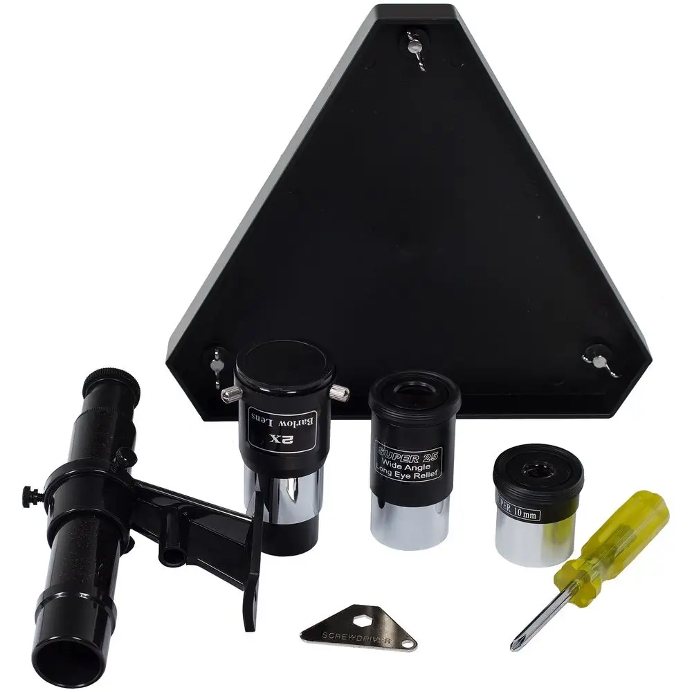 Данная модель отличается качественной оптикой и представляет собой зеркальный телескоп, благодаря чему изображение получается ярким, четким и полностью свободным от цветовых искажений. Телескоп оптимален для загородных наблюдений, однако его можно использовать и в городе.В комплект входит лоток для аксессуаров, крепящийся на треногу.