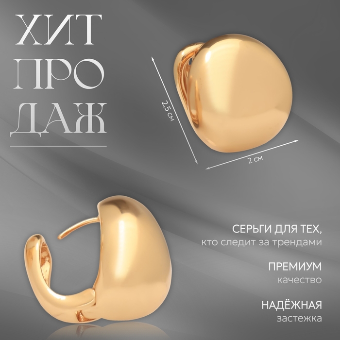 Серьги металл «Аккорд» полусфера, глянец, цвет золото