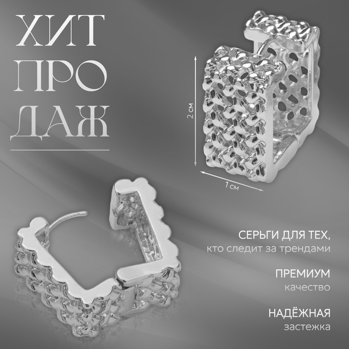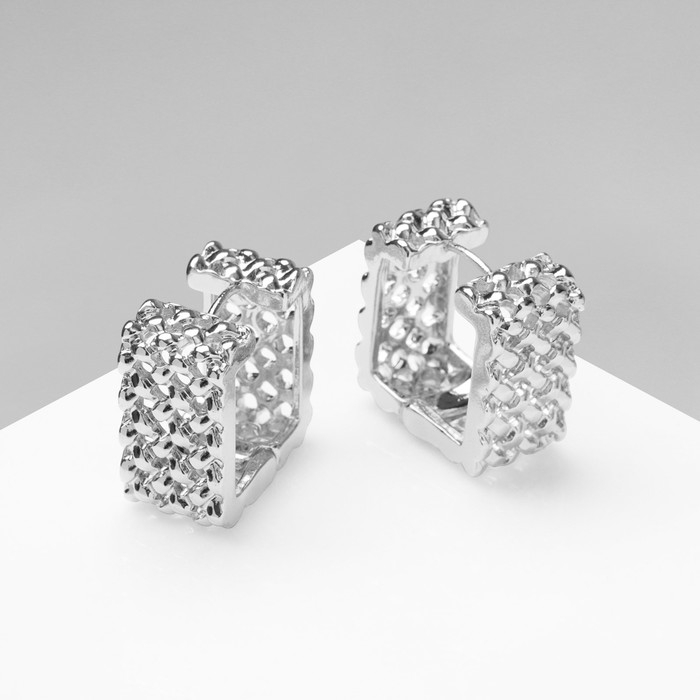 Серьги металл «Аккорд» орнамент, квадрат, цвет серебро