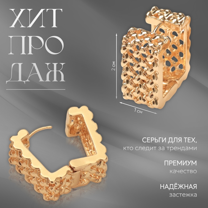 Серьги металл «Аккорд» орнамент, квадрат, цвет золото