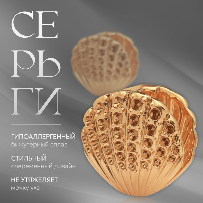 Серьги металл «Аккорд» ракушка, лучи, цвет золото