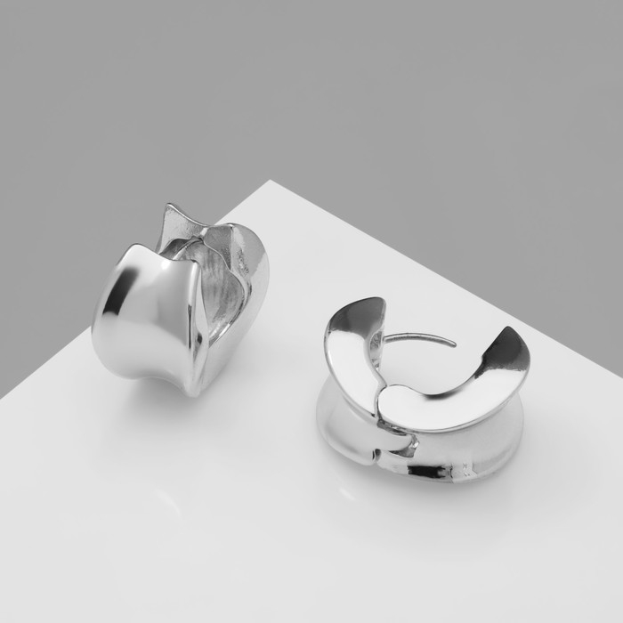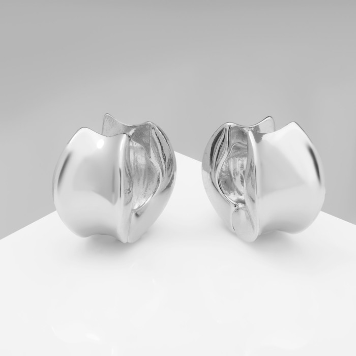 Серьги металл «Аккорд» круг вогнутый, цвет серебро