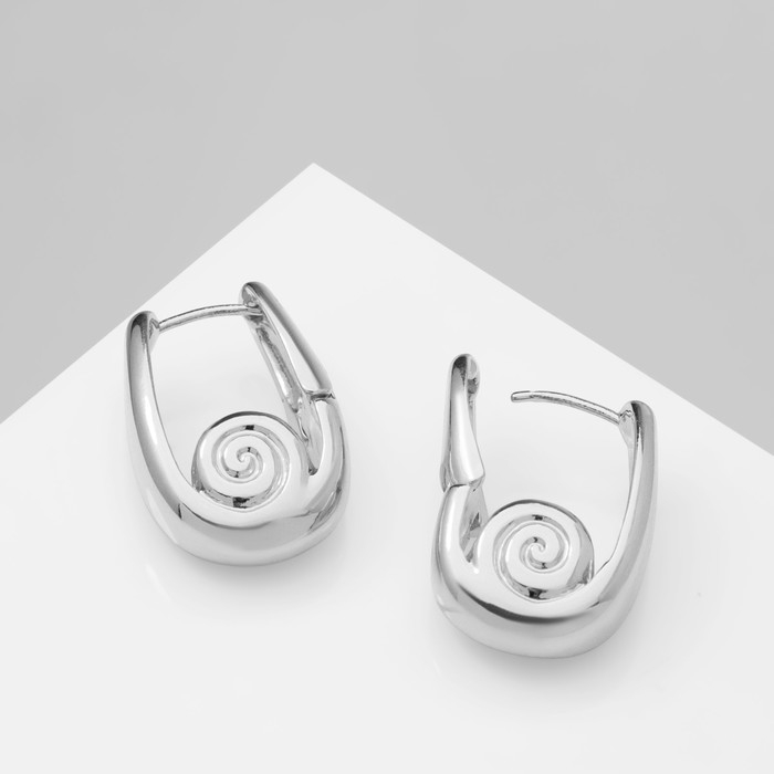 Серьги металл «Аккорд» лира, волна, цвет серебро
