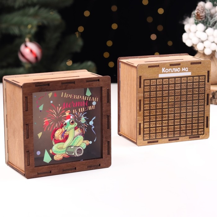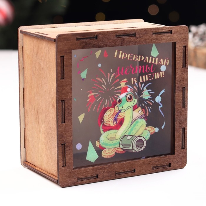 Копилка новогодняя "Превращай мечты в цели!" символ года, салют, 14 х 14 х 8 см