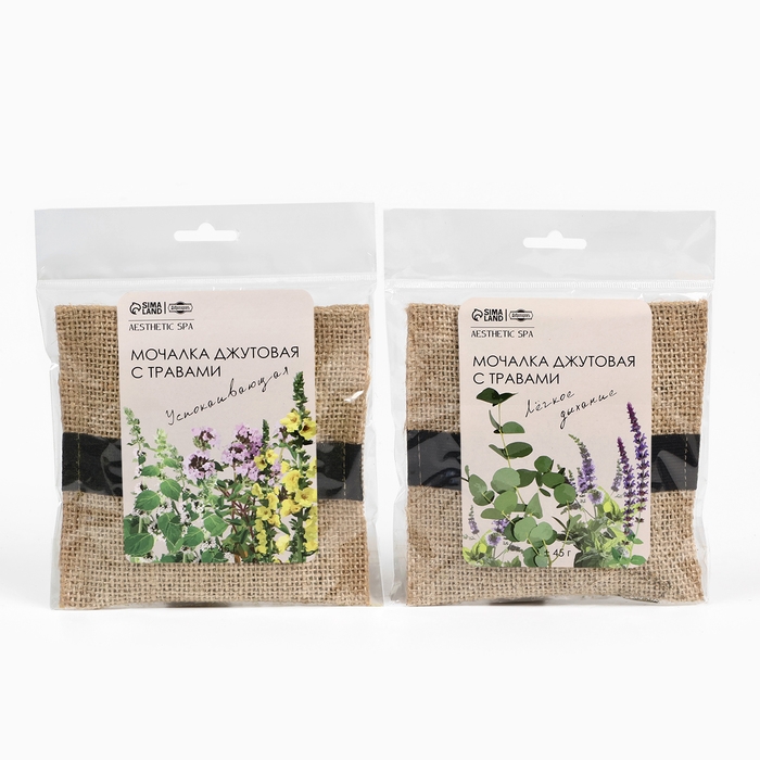 Набор джутовых мочалок с травами 2 шт "Успокаивающая и Легкое дыхание" Добропаровъ