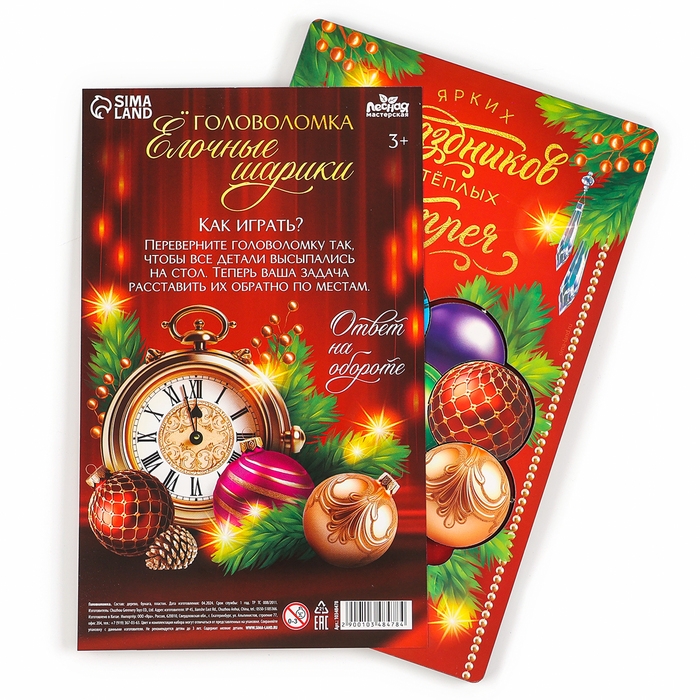 Новогодняя деревянная головоломка для детей «Новый год! Ёлочные шарики», 21 х 15 см