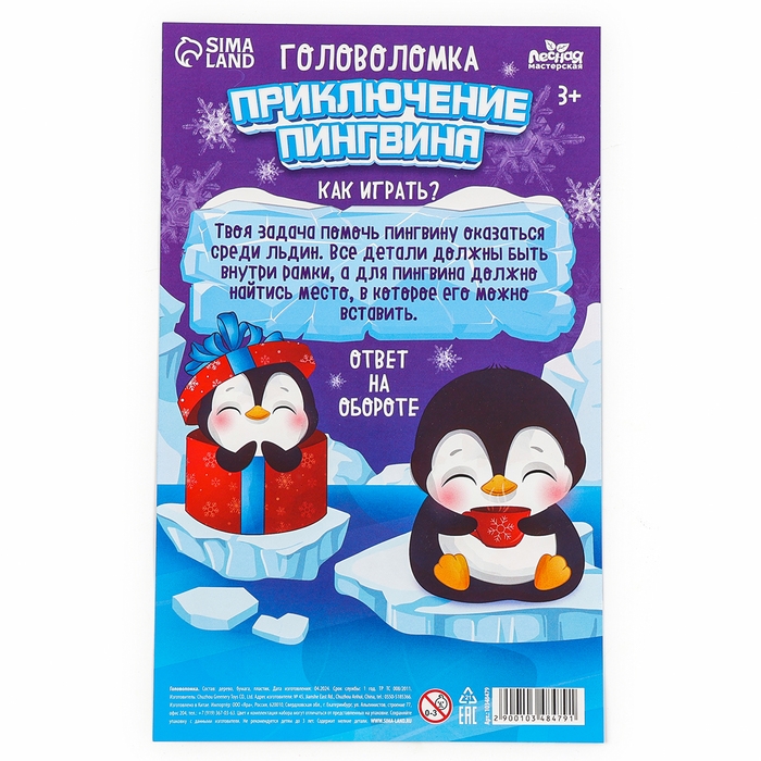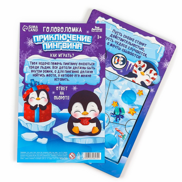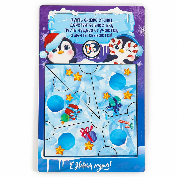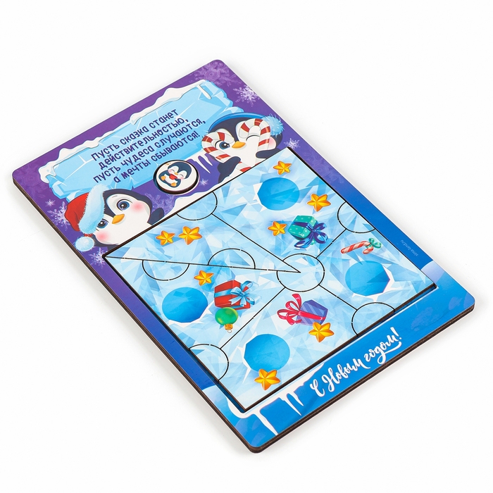 Новогодняя деревянная головоломка для детей «Новый год! Приключение пингвина», 21 х 15 см