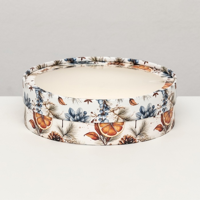 Коробка подарочная новогодняя для макарун тубус с окном "Мандаринки", 20 х 6 см. Новый год
