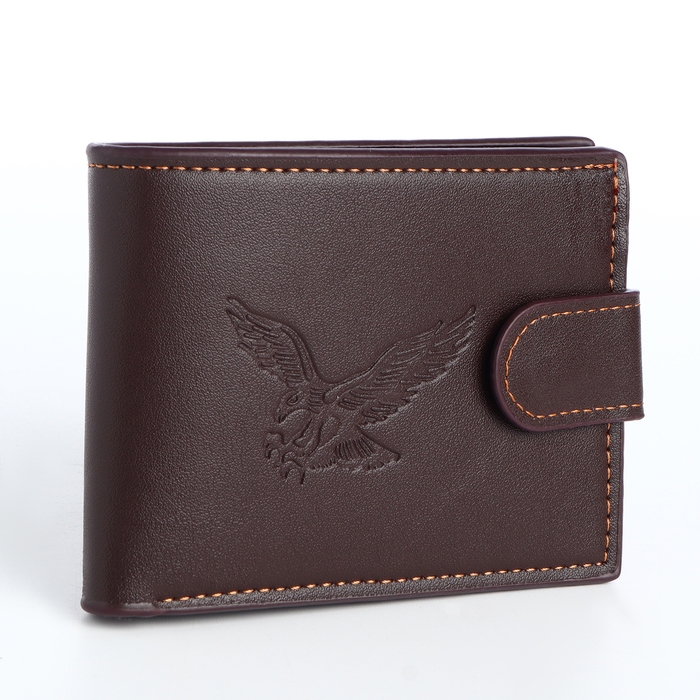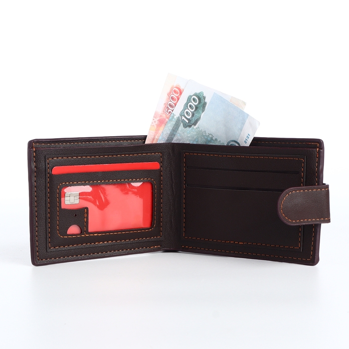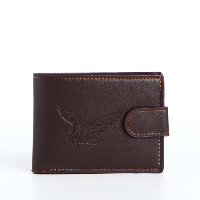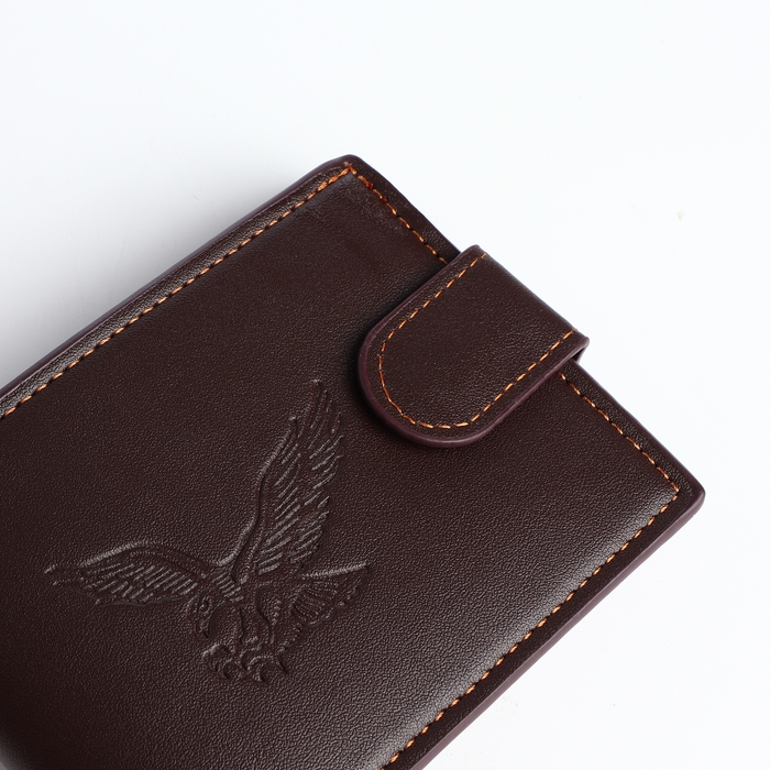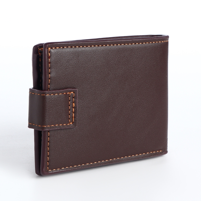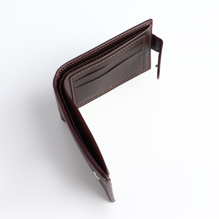 Портмоне мужское на кнопке, отдел для карт, монет, цвет коричневый