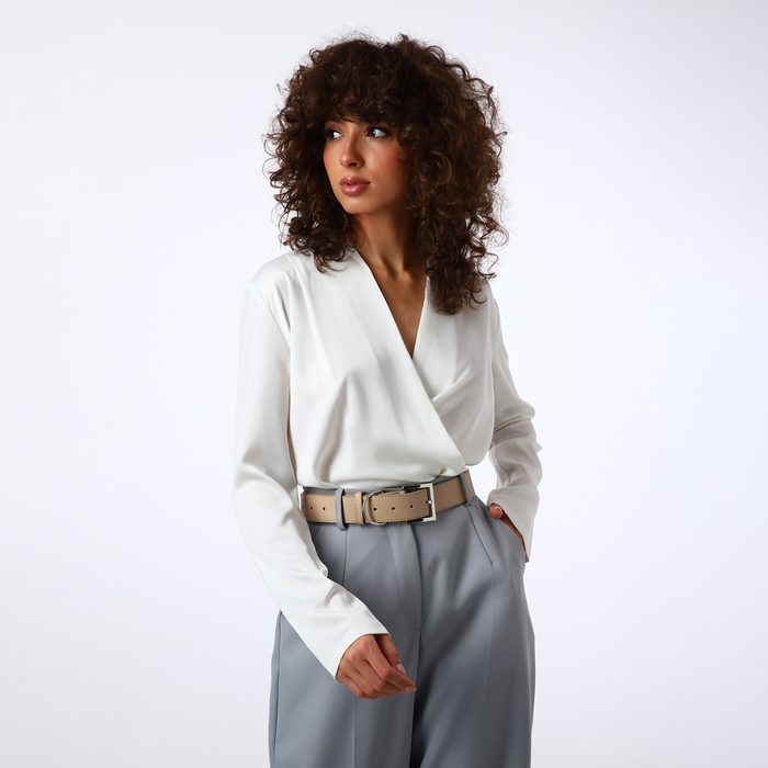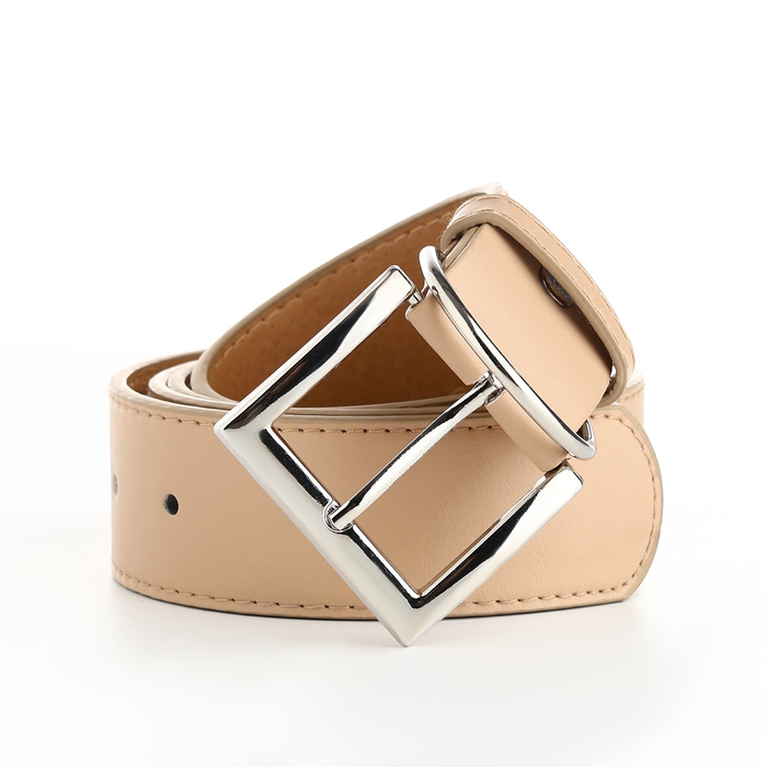 Ремень женский, ширина 4 см, винт, пряжка металл, цвет бежевый