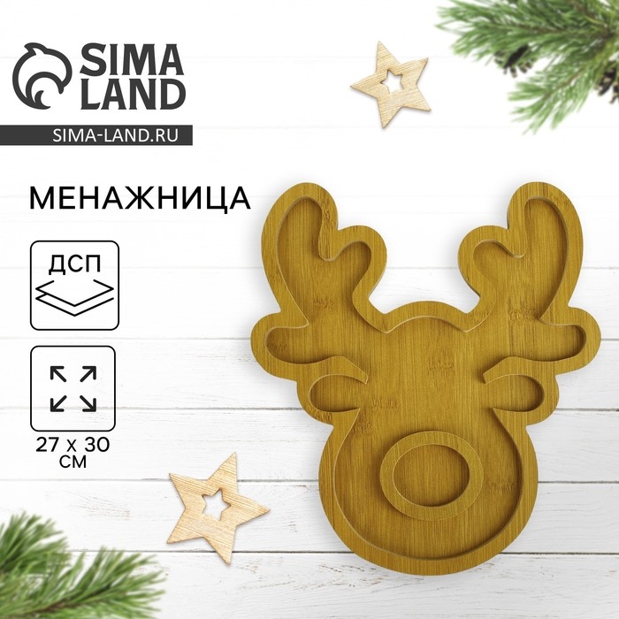 Новый год. Менажница деревянная «Зимний олень», 27 х 30 см