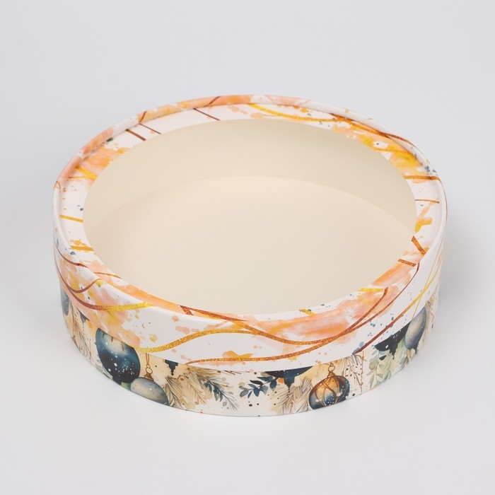 Новый год. Коробка подарочная новогодняя для макарун тубус с окном "Новогодний подарок" 21 х 21 х 8 см.