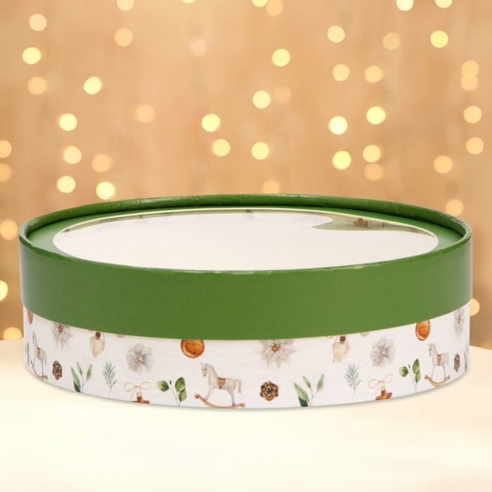 Коробка подарочная новогодняя для макарун тубус с окном "Ёлочные игрушки", 20 х 6 см. Новый год