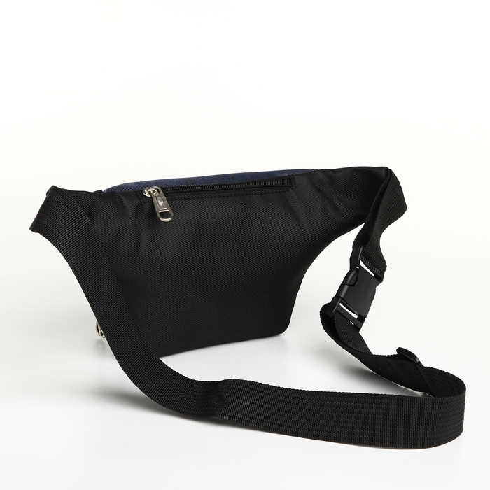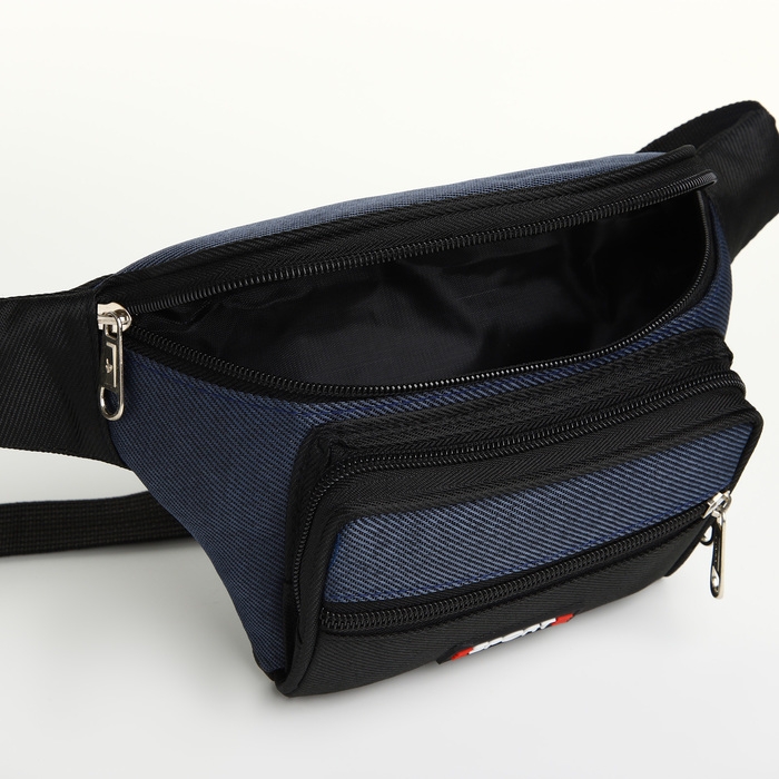 Сумка поясная на молнии, 3 наружных кармана, цвет синий/чёрный