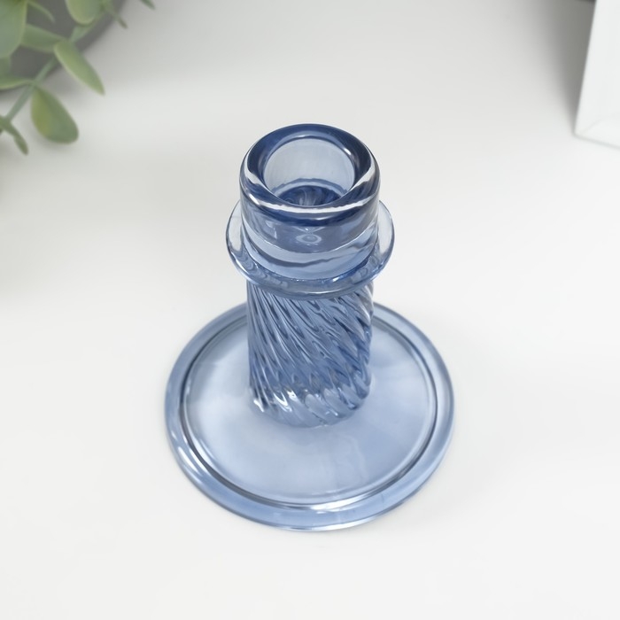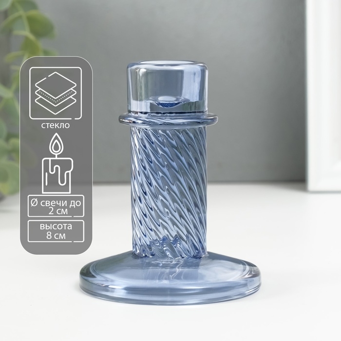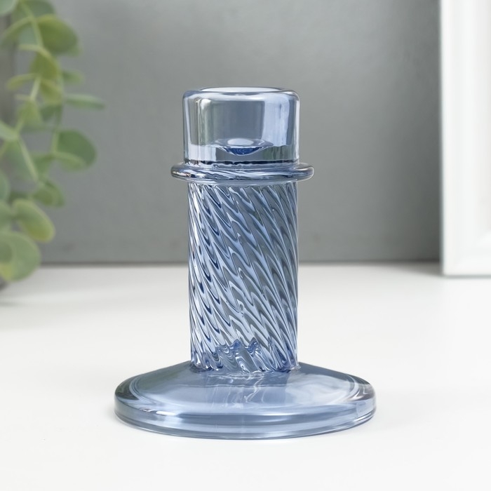 Подсвечник стекло на 1 свечу "Ручей" синий d=2 см 10х10х8 см