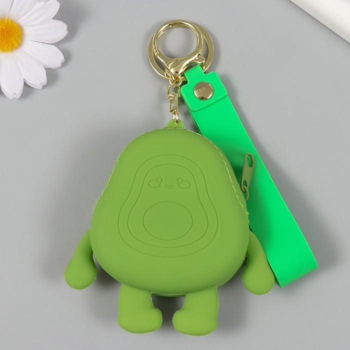 Брелок кошелёк с карабином, ремешком силикон "Авокадинка" 3х9х9 см