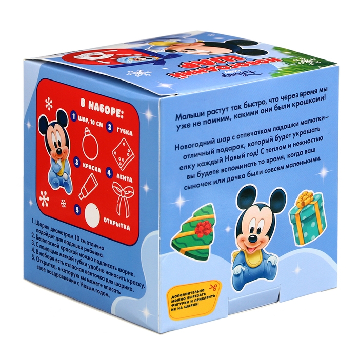 Набор для творчества: новогодний шар с отпечатком ручки Микки Маус, красный