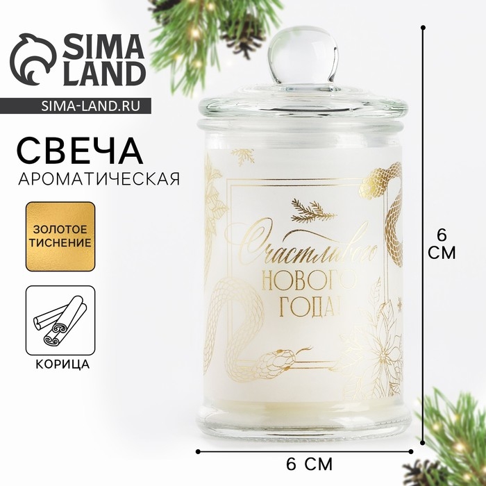 Свеча-баночка новогодняя интерьерная «Новый год: Счастливого нового года», аромат корица 11,5 х 5,8 см