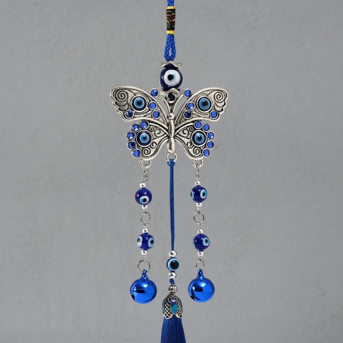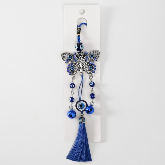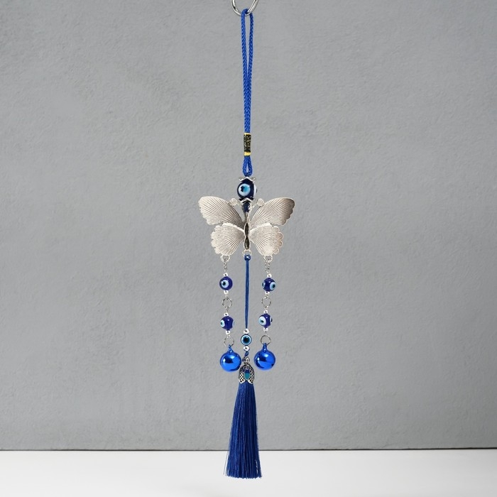 Подвеска от сглаза металл "Бабочка с колокольчиками и кисточкой" 7х30 см