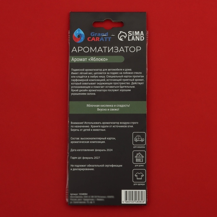 Ароматизатор Grand Caratt обладает уникальной способностью наполнять пространство приятным ароматом, который будет радовать вас на протяжении долгого времени. Благодаря высококачественным ароматизаторам, входящим в состав подвески, вы сможете наслаждаться любимыми ароматами. Подвесной ароматизатор красная звезда легко устанавливается в любом месте автомобиля, будь то зеркало заднего вида, лобовое стекло или вентиляционная решетка. Он не только наполнит ваш автомобиль приятным ароматом, но и станет отличным аксессуаром, подчеркивающим ваш вкус и индивидуальность.