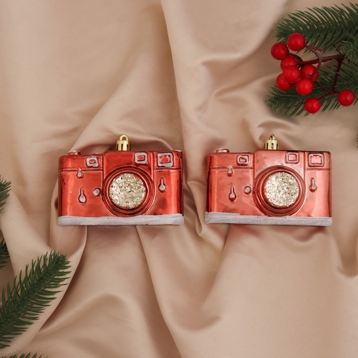 Украшение ёлочное "Фотоаппарат" (набор 2 шт) 9,5х4,5х7 см, красный