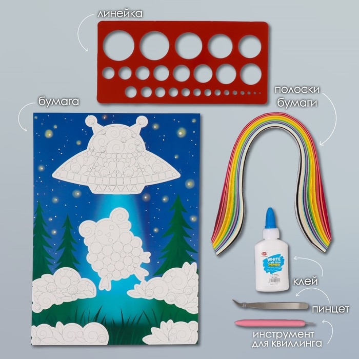 Набор для квиллинга 170 полосок с инструментами "Инопланетная тарелка и овечка" 25х33,7 см 1050101