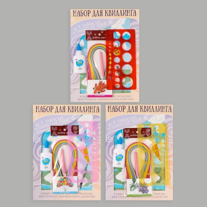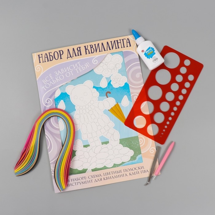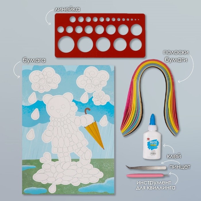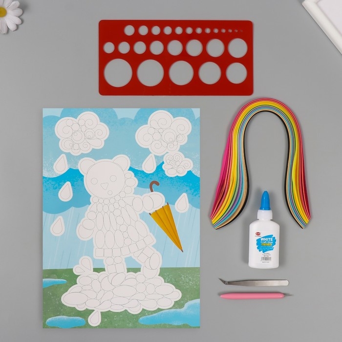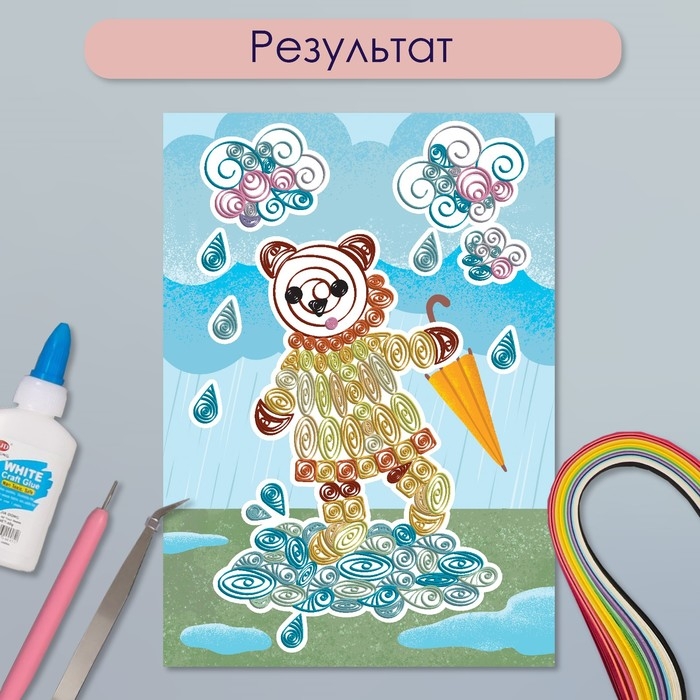 Набор для квиллинга 170 полосок с инструментами "Медвежонок с зонтом" 25х33,7 см