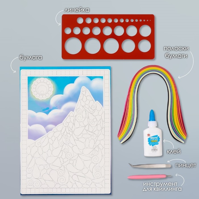 Набор для квиллинга 170 полосок с инструментами "Восход солнца в горах" 25х33,7 см