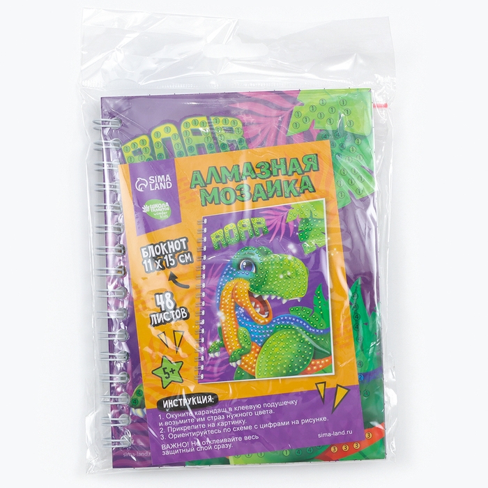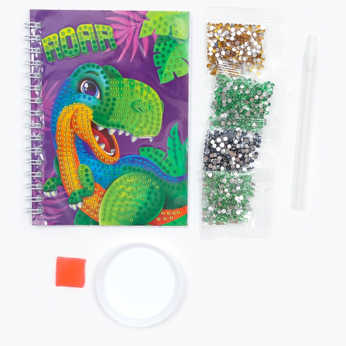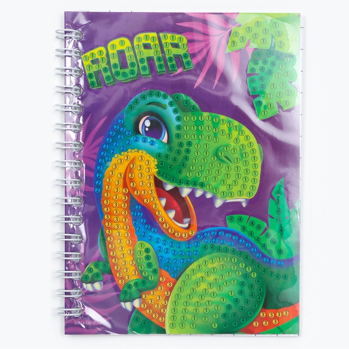 Алмазная мозаика с частичным заполнением для детей на блокноте «Дино», 11 х 15 см, 48 листов