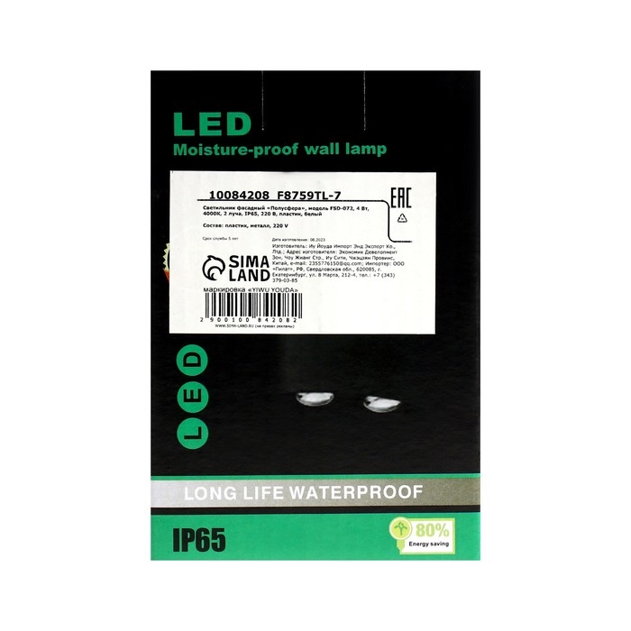 Светильник фасадный «Полусфера», FSD-072, 4 Вт, 4000К, 2 луча, IP65, 220 В, пластик, белый 1008420