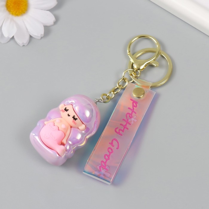 Брелок пластик, резина с карабином, ремешком "Русалочка" розовая 3х3,5х5 см