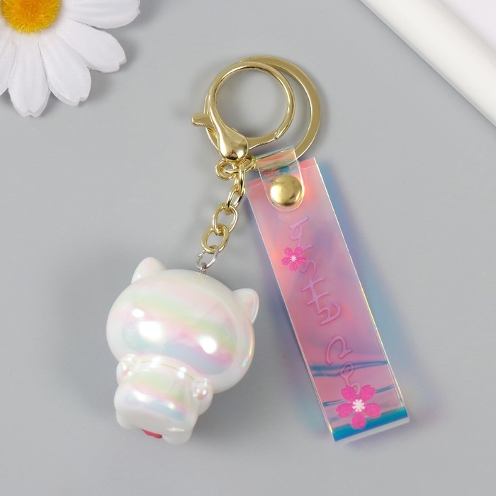 Брелок пластик, резина с карабином, ремешком "Котёнок с мороженым" 3,5х4х4,2 см