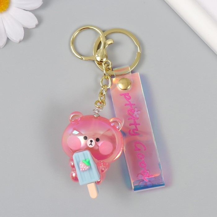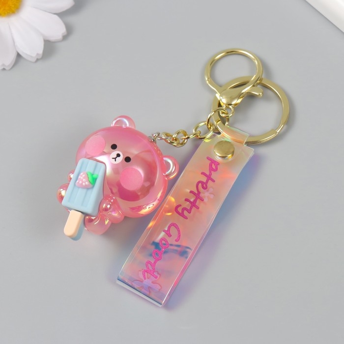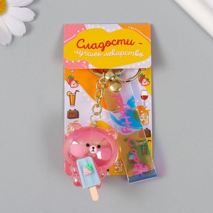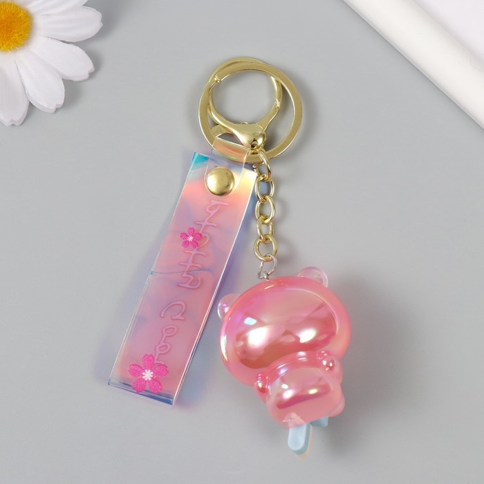 Брелок пластик, резина с карабином, ремешком "Мишка с эскимо" 3,8х3,8х5 см