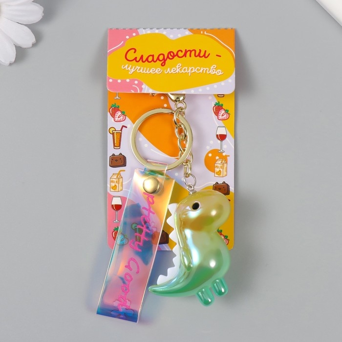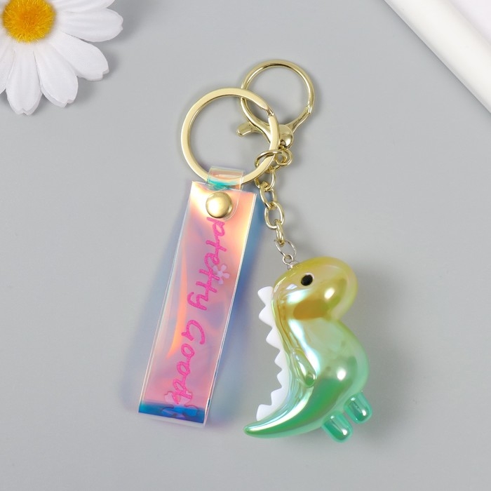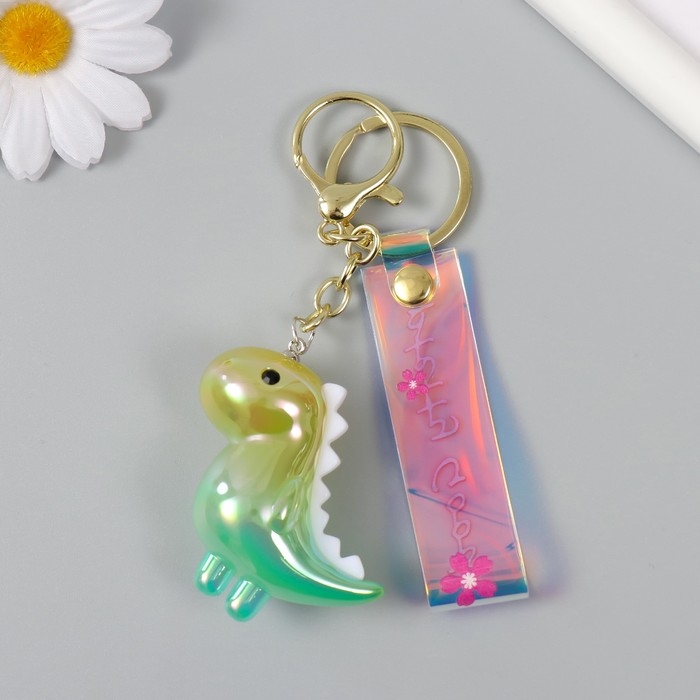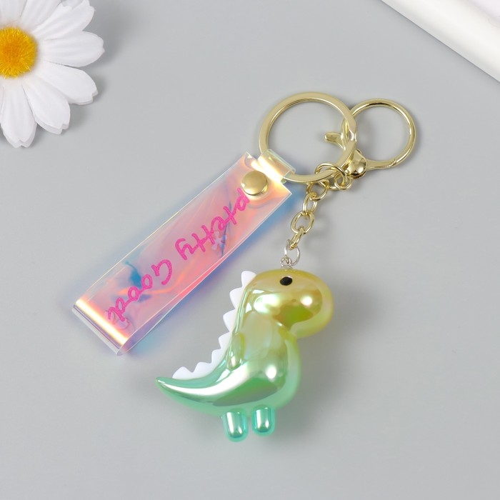 Брелок пластик с карабином, ремешком "Динозаврик" зелёный 2,5х5,5х5 см